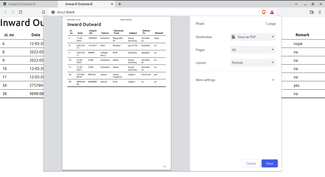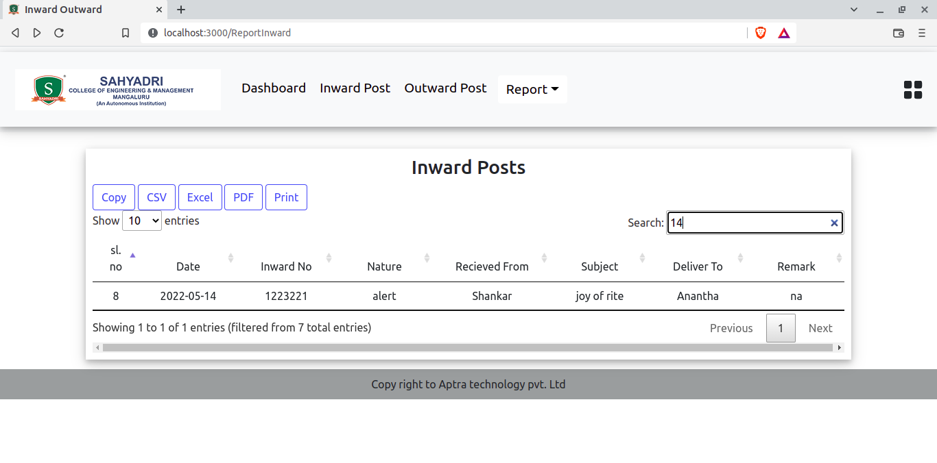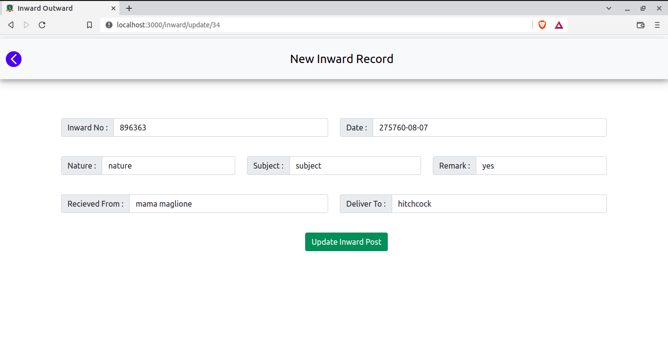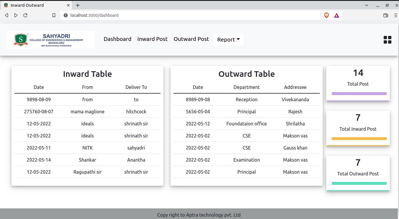 Inward-Outward is designed to keep digital logs of all the Incoming & Outgoing Post in an Organisation.